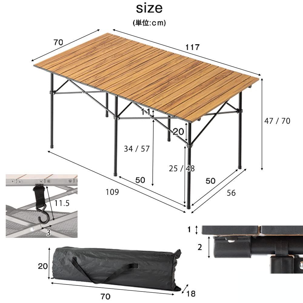 ENDLESS-BASE アウトドア テーブル キャンプ ロールトップ式 幅120×70cm 2段階 高さ調節 木目調 スチール 軽量 収納ケース付 コンパクト バーベキュー ナチュラル 44400105 10(81505)