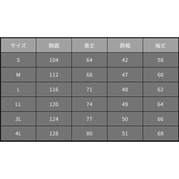 サイズ:LL(胸囲120cm、着丈74cm、肩幅49cm、袖丈64cm)