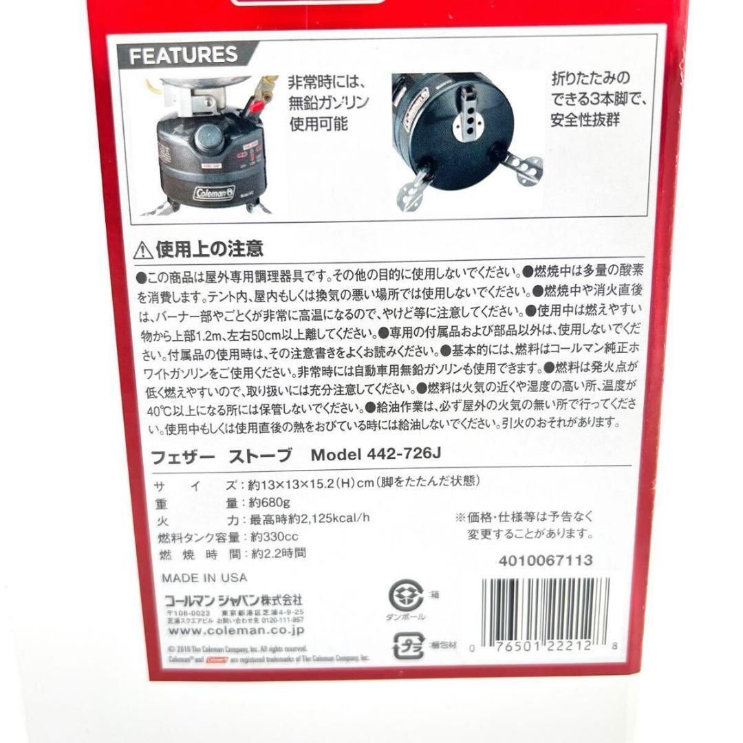 Coleman Feather Stove TM コールマン フェザー USA 442-726 J アウトドア ギア ホワイトガソリン シングル バーナー キャンプ 自炊 山 登山 料理 コーヒー ストーブ