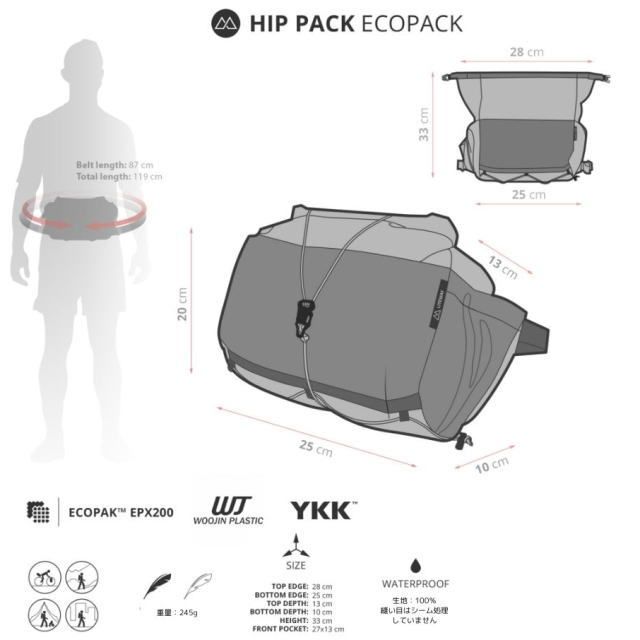 LITEWAY ライトウエイ ウエストポーチ HIP PACK ヒップパック 10 L ウエストバッグ ヒップバッグ 登山 トレッキング アウトドア フェス トラベル 旅行 ハイキング バイクパッキング オートバイ 軽量 丈夫 ECOPAK EXP EX