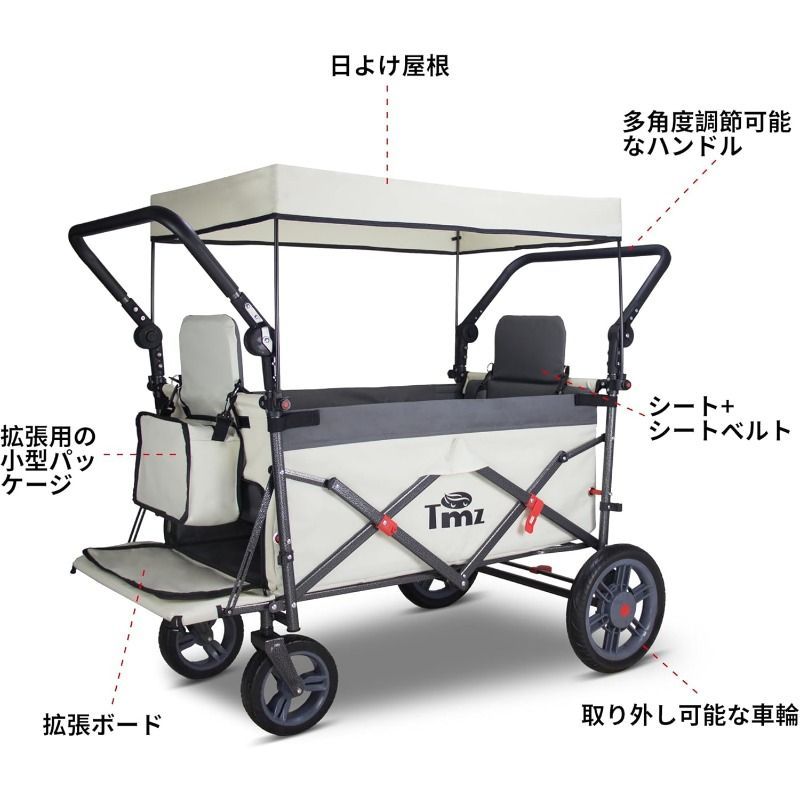 アウトドアワゴン 屋根付き キャリーワゴン 折りたたみキャリーカート 買い物用 ピクニック お花見 キャンプカート 荷物運び 大容量 ベビーカー シート&シートベルト付き ビーチトロリー ビーチカート 食料品カート