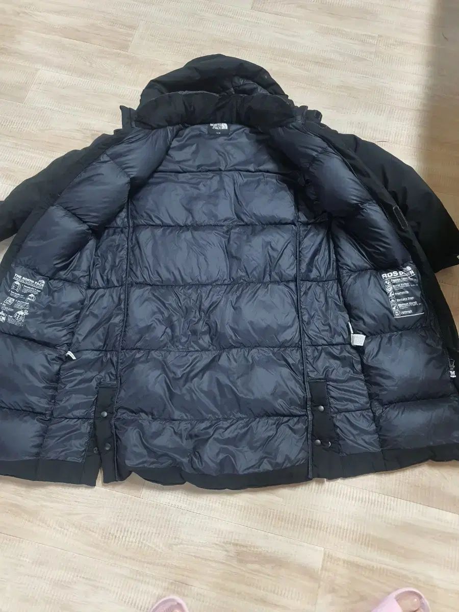 レディース 95サイズ、メンズ 90サイズ THE NORTH FACE ザノースフェイス グースダウンロングダウンジャケットです。ブラックカラーなので、普段着に合わせやすくコーディネートしやすいです。グースダウンの中綿で軽くて保温性に優れています。